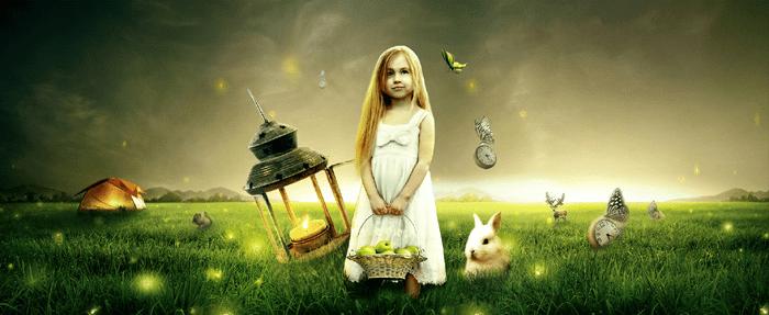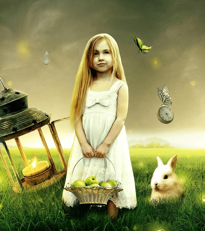 如何在PS中合成小女孩憧憬的梦幻童话世界效果?