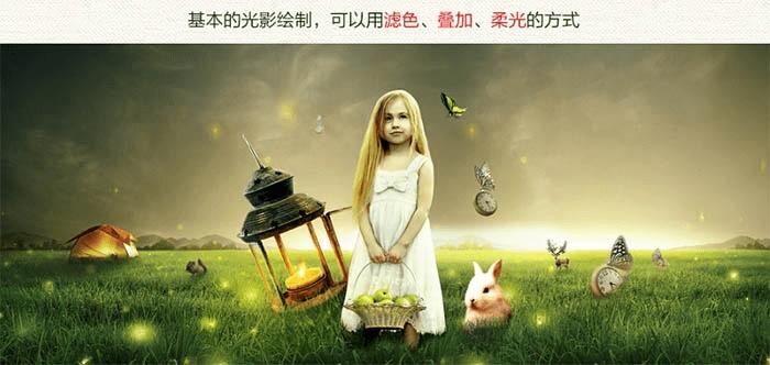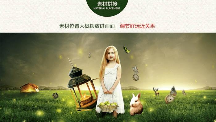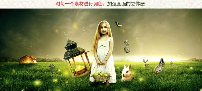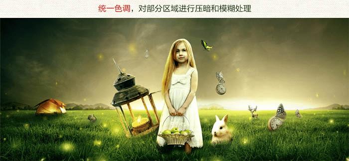 如何在PS中合成小女孩憧憬的梦幻童话世界效果?(2) 来源:www.45fan.com 2016-02-20 19:09:52 添加遮挡素材,让素材融合到环境中,可以用草的笔刷画上去。 4、基本的光影绘制,可以用滤色、叠加、柔光的方式。 5、对每一个素材进行调色,加强画面的立体感。 6、统一色调,对部分区域进行压暗和模糊处理。 最终效果: 共2页: 上一页12下一页 推荐阅读 怎么样使用ps合成创意的暗黑风格骷髅女孩 如何使用ps合成简约大气温馨的家居主题海 怎么样使用PS合成制作出蜗牛背上的梦幻房 如何使用ps合成魔幻的美女和狮子海报? 如何使用PS合成制作出在云海中的泛舟的美 如何使用ps合成北欧小户型沙发摆放动态场 怎么样将合成图拆分离析? 怎么样在ps中合成创意大气的男士火山泥面 如何在Photoshop中合成骑士站在山间瞭望 如何在ps中合成时尚公主女鞋促销全屏海报