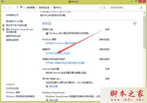 2、点击,打开有关病毒防护 的消息;