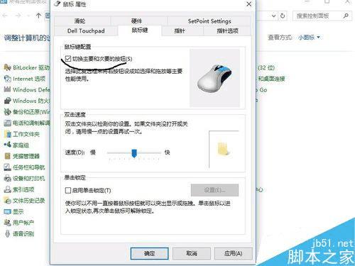 在打开窗体中找到鼠标键设置选项,鼠标键配置中,勾选切换主要和次要的按钮,见图