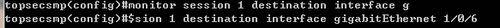 7、配置目的镜像口。monitor session 1 destination interface gigabitEthernet 1/0/6,使端口6为目的镜像口。注意事项同步骤4或者步骤5。