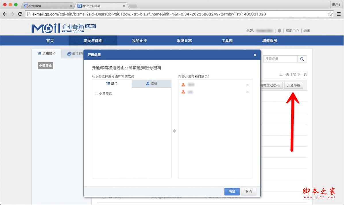 五、登录腾讯企业邮箱,并为员工设置企业邮箱帐号