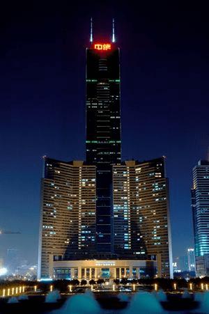 在Photoshop CS里,先打开第一张,调整好色阶、饱和度等,然后把第二张作为图层复制到第一张(0层)上,图层属性选为“滤色”。然后分别调整两个图层的曲线、亮度等,再把旁边的那栋碍眼的楼和吊机去掉,得到了最后的结果。