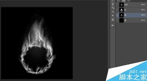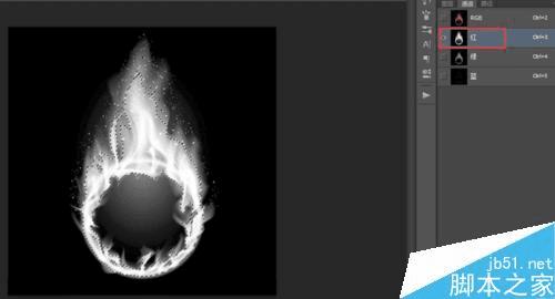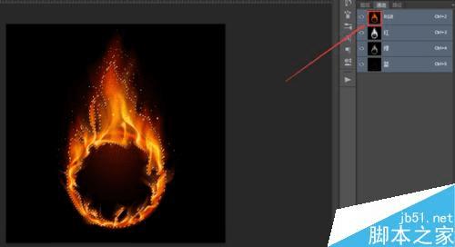 最后将红绿蓝三个图层进行合并,即可得到一张具有透明背景的火焰素材了。