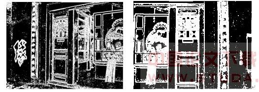 首先,抽取合适的图像特征来定位拼接,为了尽可能多的保留图像的特征,利用数字图像处理中的Laplace算子边缘检测算法,再加上二值化处理和平滑滤波3*3模板的噪音消除抽取出图像的特征图。