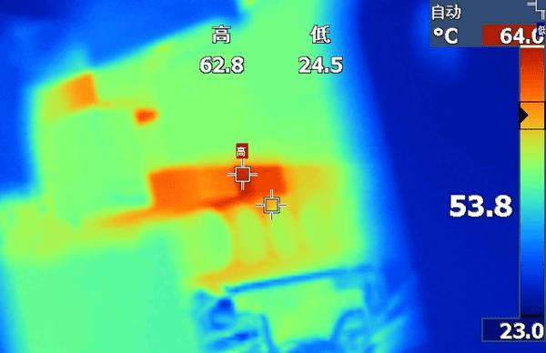 温度测试部分,我们主要考察主板CPU供电部分的问题,这部分温度是主板发热量较大的地方,也是影响主板稳定性的关键。我们采用福禄克Ti25热成像仪进行测试,记录闲置(CPU、显卡空载)及满载(CPU满载、显卡空载)时两个数据。