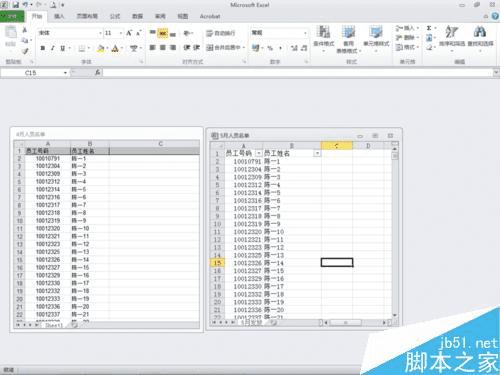 将需要对比的两个表格进行整理:员工编号,将作为搜索的关键字段,要放在其他字段的最前面;并且,数据格式要保持一致,可以选为常规。