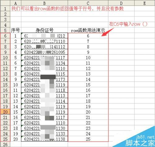 下面我们看row函数的用法,如下图所示row函数没有参数,返回值为它所对应的行号。