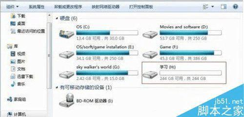 提示:前面说要分一个250G的盘,为何这里只显示244G呢,那是因为刚刚输入的250000MB不是250G的容量大校接着我们打开我的电脑看一下,就会看到多出一个刚刚分出来的盘。另外,利用Windows7自带的磁盘管理工具对硬盘进行分区,不会对数据造成丢失,出错等现象,且非常干净不会有垃圾文件产生。