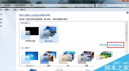 如下图所示,选择“联机获取更多主题”,这里需要注意,必须是windows正版才可以。