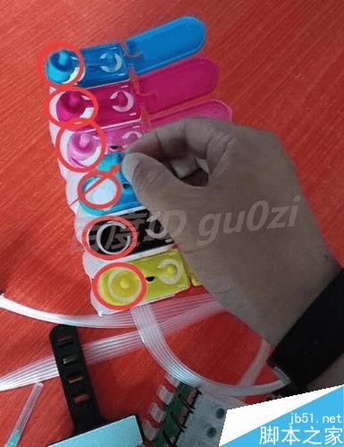 将六色连续供墨系统墨仓上的塞子逐个拉下来,