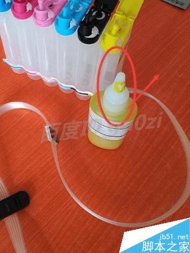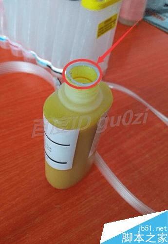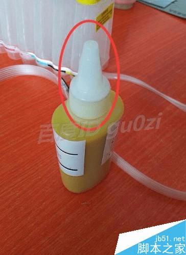 取出一色墨水以黄色的为例,将墨水瓶的盖子取下