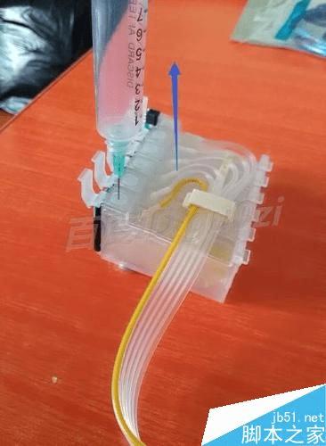 反复进行第8步的操作,使墨盒中充满墨水,如果墨水被吸入注射器的话,换另一色操作时,请一定要清洗注射器.