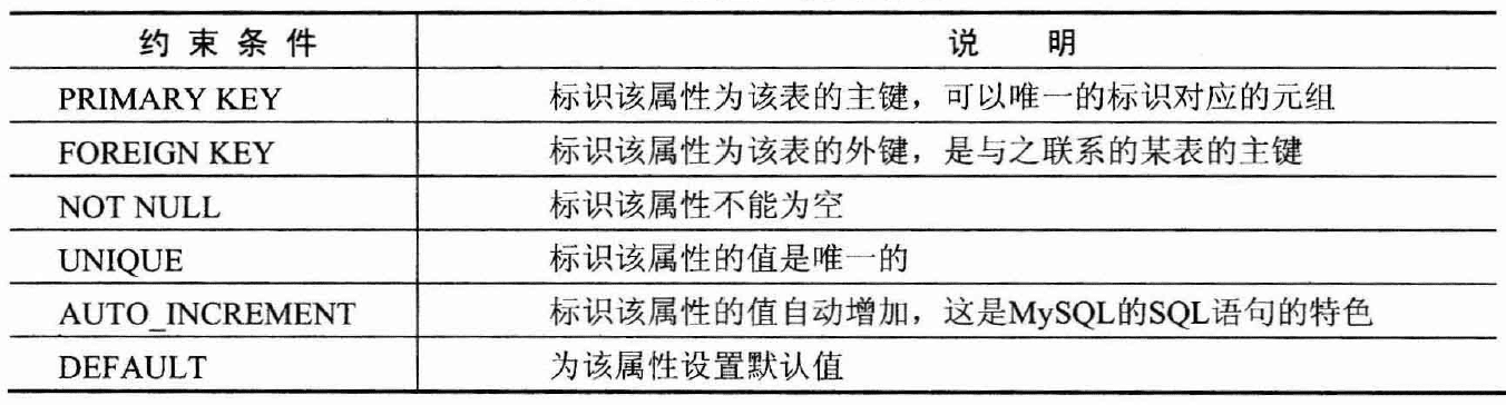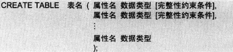 其中,属性名指表中字段的名称,数据类型即对应字段的数据类型,完整性约束条件指对应字段的某些特殊约束条件。