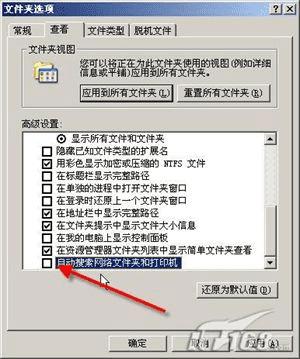 每次你打开【我的电脑】来浏览文件夹的时候,可能都会注意到有一点延时。这是因为XP在你每次打开资源管理器的时候,都会自动去查找网络文件和打印机。关闭之则会显著的改善浏览文件夹时候的速度。