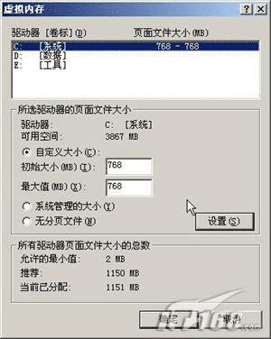 建议:如果你的Windows XP的内存不少于512MB,可以按照1:1的比例来设置页面文件大小,如果内存低于512MB的话,建议按照实际物理内存的1.5倍来设置页面文件大校八、用BootVis优化起动速度