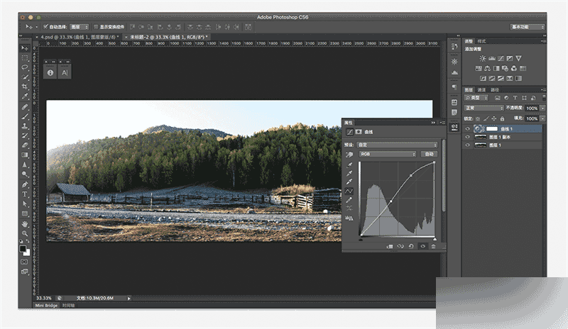 2,在PS里新建曲线图层,调节RGB曲线成"S"型,提亮,压暗,增加图像的对比度,也可以使用比较复杂的双通道曲线增加对比度,看个人喜好啦~。