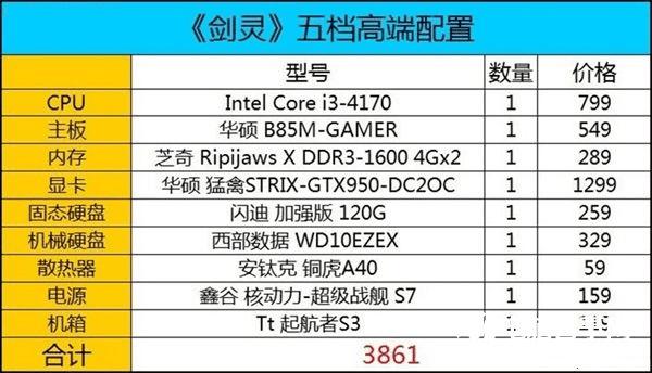 《剑灵》官方推荐的五档游戏画质,但是要想全开剑灵五档游戏画质,需要电脑配备Intel第四代酷睿处理器、NVIDIA GTX 750显卡以及4G容量的内存,对于部分伙伴们可以得面临更换电脑主机的问题,本着性能有过之而无不及的原则,下面笔者为大家带来了这样一套不到4000元以i3-4170为主的处理器游戏电脑配置清单,感兴趣的伙伴们可以前来了解下哦。
