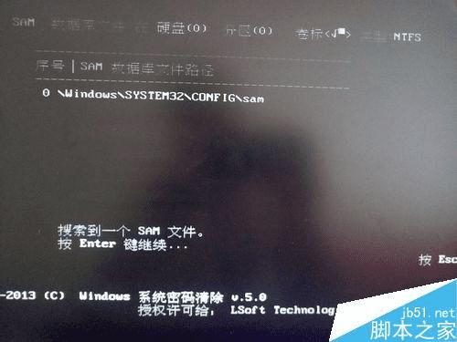 然后系统开始搜索SAM文件 也就是密码所在的位置。