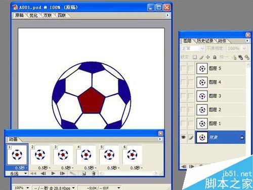 如何通过PS结合Imageready简单制作足球旋转动画效果?