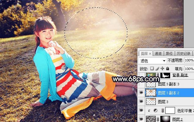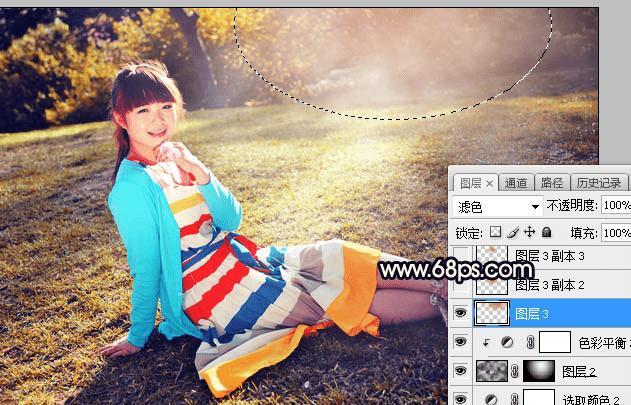 如何在ps中调制出绚丽的秋季暖色草地上人物图片?