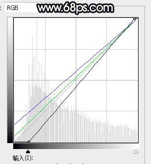 4、创建曲线调整图层,对RGB、绿、蓝通道进行调整,参数设置如图8,确定后按Ctrl + Alt + G 创建剪切蒙版,效果如图9。这一步同样把图片暗部压暗,并增加蓝紫色。