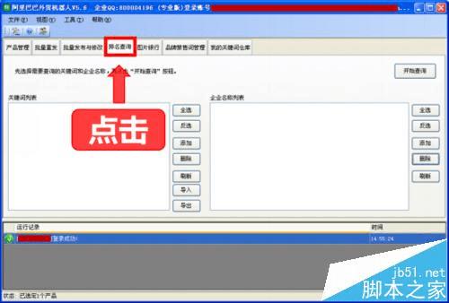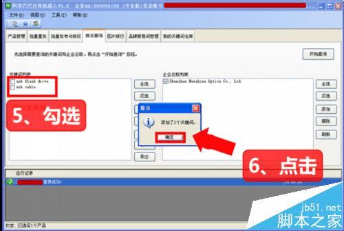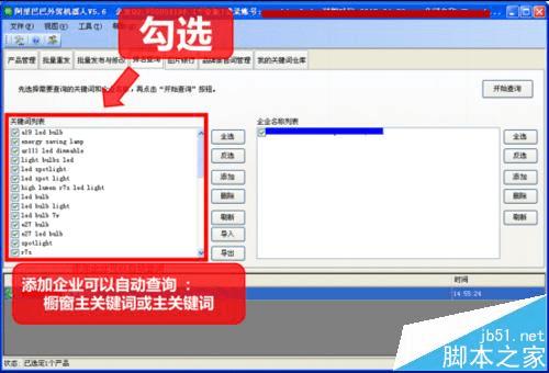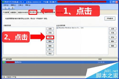 添加企业名称列表→选择导入橱窗关键词→开始查询→查询完成→导出到列表