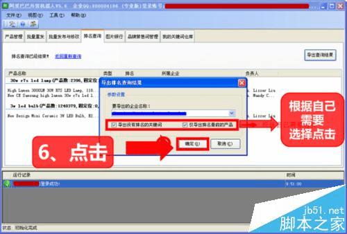 开始查询→查询完成→导出到列表(步骤同任意关键词3查询内容以后的内容相同)