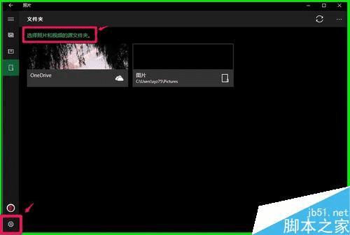 在打开的照片窗口,点击左下角的【设置】图标或点击【选择照片和视频的源文件】;