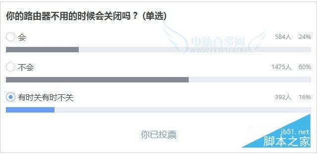 一般情况下,很多网友家里的路由器基本每天都是24小时开着的,根据一项网上的调查,仅有24%的用户会选择经常晚上关闭路由器,超过60%以上的用户,基本都是长期开着路由器,而不会去关闭。