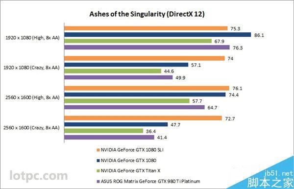 《奇点灰烬》的测试结果可以明显看出,现在的GTX 1080 SLI驱动对DX12游戏支持还很不友好,1920x1080分辨率下、高画质下,双卡甚至还跑不过单卡,直到2K分辨率疯狂画质、8x AA,双卡较单卡才有52.4%提升。