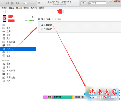c. 点击同步,完成铃声同步