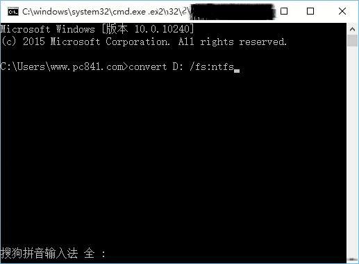 上面这句话的意思是,将FAT32分区格式的「D盘」转换成NTFS格式。如果还有其它盘符,依次使用上面命令执行即可。