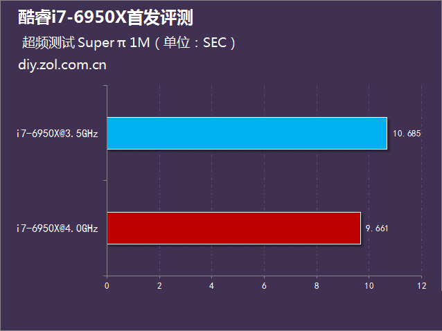 我们将处理器超频至4.0GHz,再通过几款软件对超频前后的成绩进行了对比。可以看到,酷睿i7-6950X极具超频潜力,在小幅超频之后性能提升明显,相信对于极限超频玩家来说,还能够创造出更加震撼的得分。能够获得如此强大的超频表现,与这款处理器14nm的工艺制程及原生十核心的设计是分不开的。