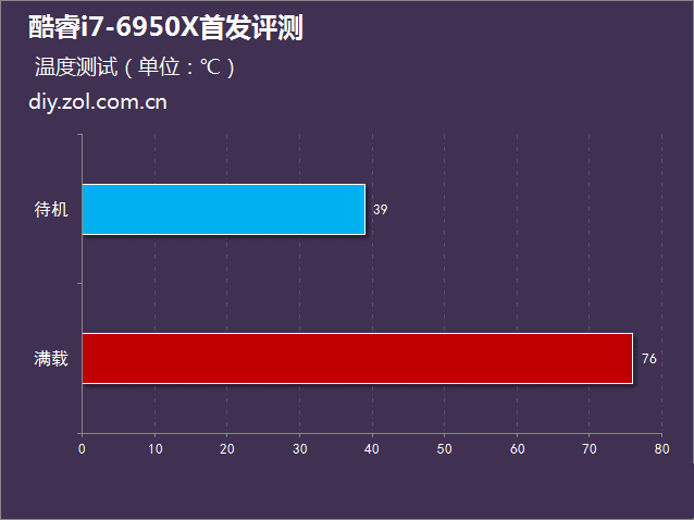温度方面,由于处理器本身的TDP已经达到了140W,因此在十核心火力全开的状态下温度偏高也是正常现象,并不会对平台的稳定性造成影响。