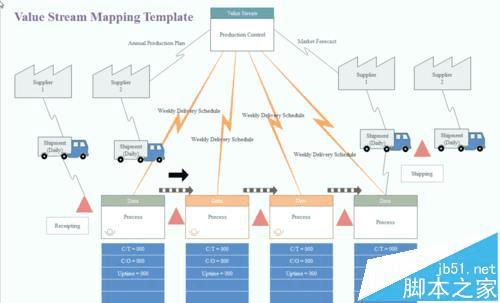 价值流程图(Value Stream Mapping,VSM)是用来描述物流和信息流的形象化工具,它运用精益制造的工具和技术来帮助企业理解和精简生产流程。价值流程图的目的是为了辨识和减少生产过程中的浪费。那么怎么使用亿图图示来画价值流程图呢,下面我来演示一下。