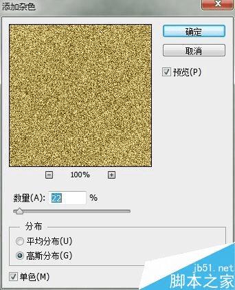 单击-滤镜-杂色-添加杂色命令,在对话框中设置-数量22,选择高斯分布和单色,效果如图所示。