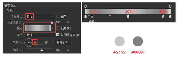 其中深色色块位置为“0%”、“25%”、“53%”、“78%”、“100%”,其颜色均为“#808080”