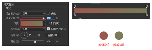 绘制一个350*350px,圆角为60px的圆角矩形,为其添加一个固有色:“#ba9b7a”,然后再为其添加明暗变化(使用渐变叠加):