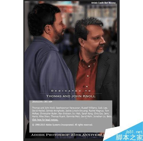 PS:Photoshop是否进行额外的画面捕捉或者记录就不得而知,但是有个秘密画面可以看一下:关闭PS重新启动,然后按着Ctrl,点击"帮助>关于Photoshop",这时会出现一个秘密画面。