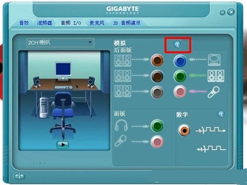 点击选项卡“音频I/O”,点击Realtek高清晰音频配置设置面板中一个小扳手的标识,上图红色框标注处