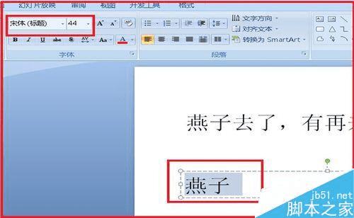 6、然后选中后面输入的文字,开始移动文本框,和原来的文字进行重合。