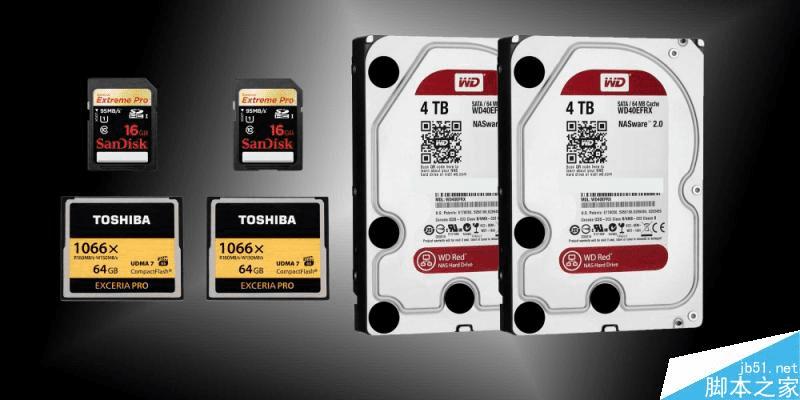 接下来就说下相机存储卡,一般最多的就是SD卡和CF卡,随着连拍速度和相机像素提升,对卡的要求越来越高,一般我们都会选择90mb以上每秒读写速度的卡,使用容量基本是16G,32G,64G比较多,一个摄影师基本都至少有四张卡,卡的单价:SD卡基本250左右,CF卡在450左右 太贵?这绝对不贵,贵的CF卡几千都有,这里我说的都是理性合理消费。这样四张相机存储卡的成本基在1500左右。卡的损坏和遗失率比较高,随着相机的像素提高也很可能随时增加卡的数量。 相机存储只是拍摄当天的,回去之后还要存储于电脑里,作为长期的存储和备份。那我们需要多大的硬盘呢?