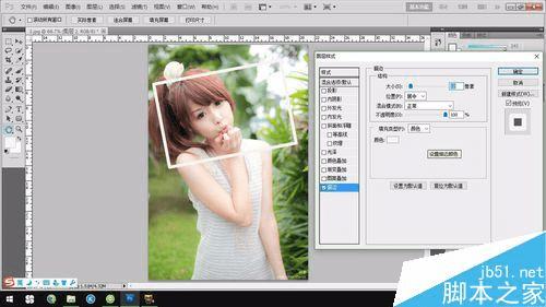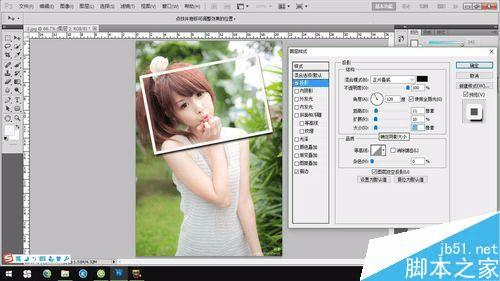 第三步:对图层2添加效果:投影和描边,双击图层2——弹出“图层样式”对话框,对图层进行描边和投影设置,参数如图(不同素材参数不同,具体参数看个人喜好)