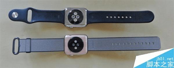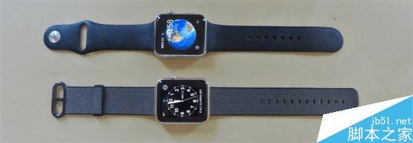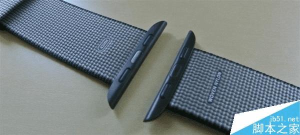 38mm(上)和42mm版本尼龙表带的样式细节有所差异