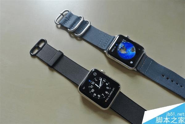 值得注意的是,38mm和42mm的尼龙表带在细节上有所差异,总体来说42mm版本更显档次一些。