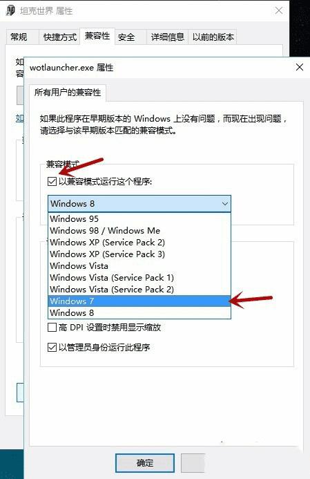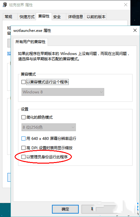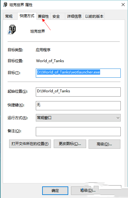 6、可能到这一步还有点兼容性的小问题(一般都能解决)那么我们把这个勾打上,进入坦克世界图标右键属性找到兼容性;