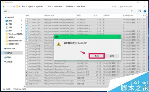 我们点击删除后,会弹出一个警告对话框:确实要删除选中的Cookie吗?,如果一定要删除,点击:是(Y);