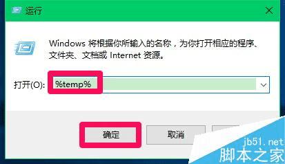 我们也可以点击系统桌面左下角的【开始】,在开始菜单中点击【运行】,在运行对话框中输入:%temp%命令,点击确定或者回车,打开用户帐户临时文件夹;