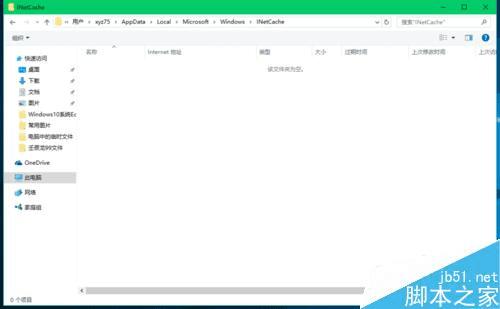 进入资源管理器,依次展开C:\Users(用户)\xyz75(用户名)\AppData\Local\Microsoft\Windows\INetCache;